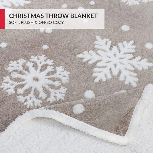 Christmas Blanket Sherpa Throw - 60X80 Gray Snowflake - Soft, Cozy, Warm - Perfect for Holiday Clearance - Winter Decorations for Home